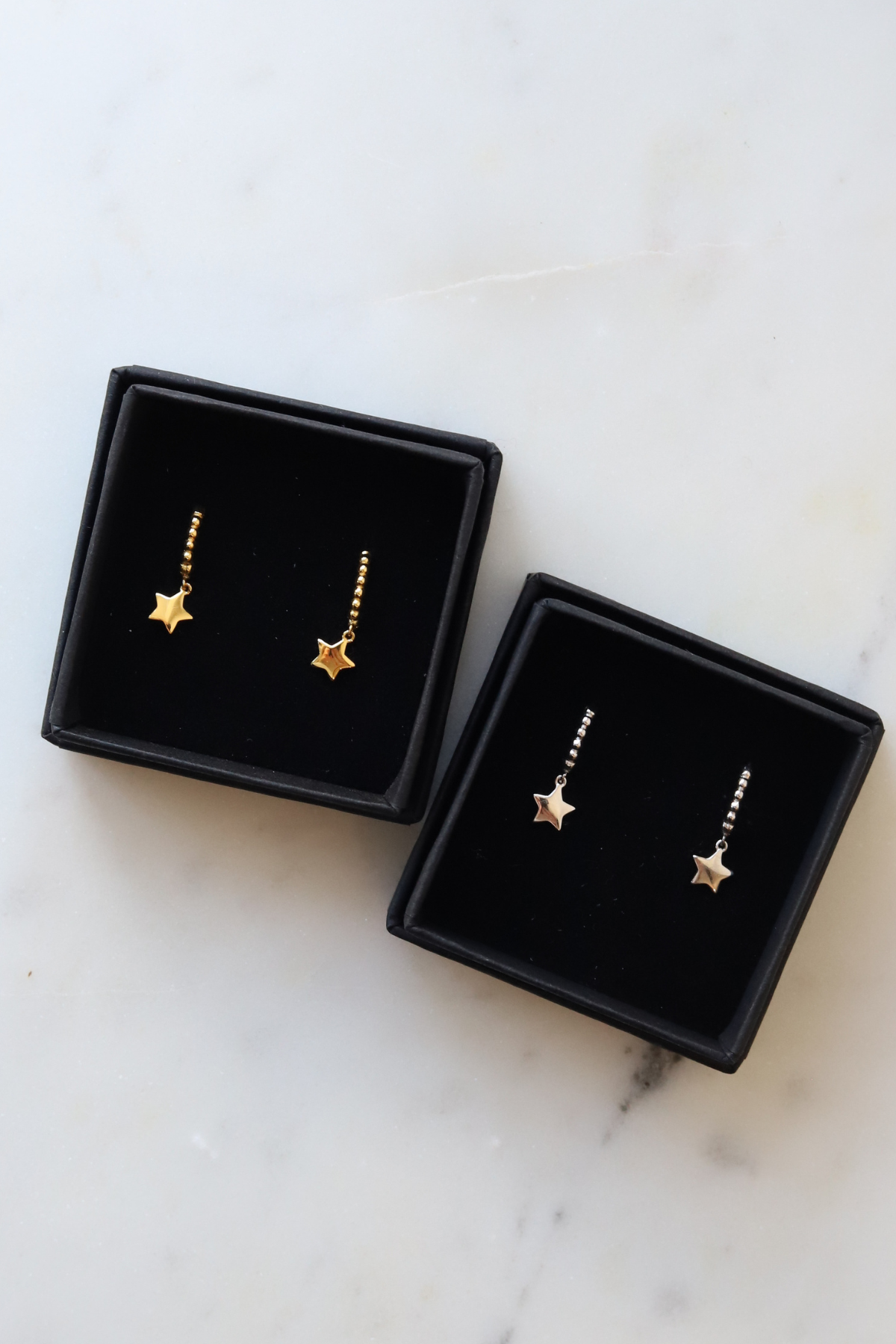 These Bobble Star Huggies combine the classic charm of solid sterling silver with a playful dangle star design. Easy to wear and lightweight, they bring a subtle sparkle to your everyday look. For a touch of extra luxury, choose the option with added 18k gold, perfect for mixing and matching or giving your style a warm glow.