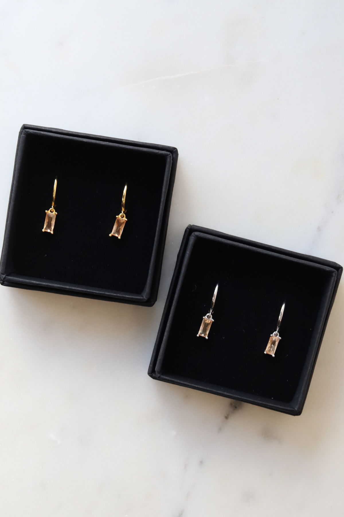Peach Crystal Huggies offer a chic twist on classic sterling silver huggie earrings, featuring a delicate dangle option in 18k gold. These versatile earrings bring a relaxed yet elegant touch to any outfit, perfect for everyday wear or special occasions. Their subtle peach crystal detail adds a soft pop of color, making them a charming addition to your jewelry collection.