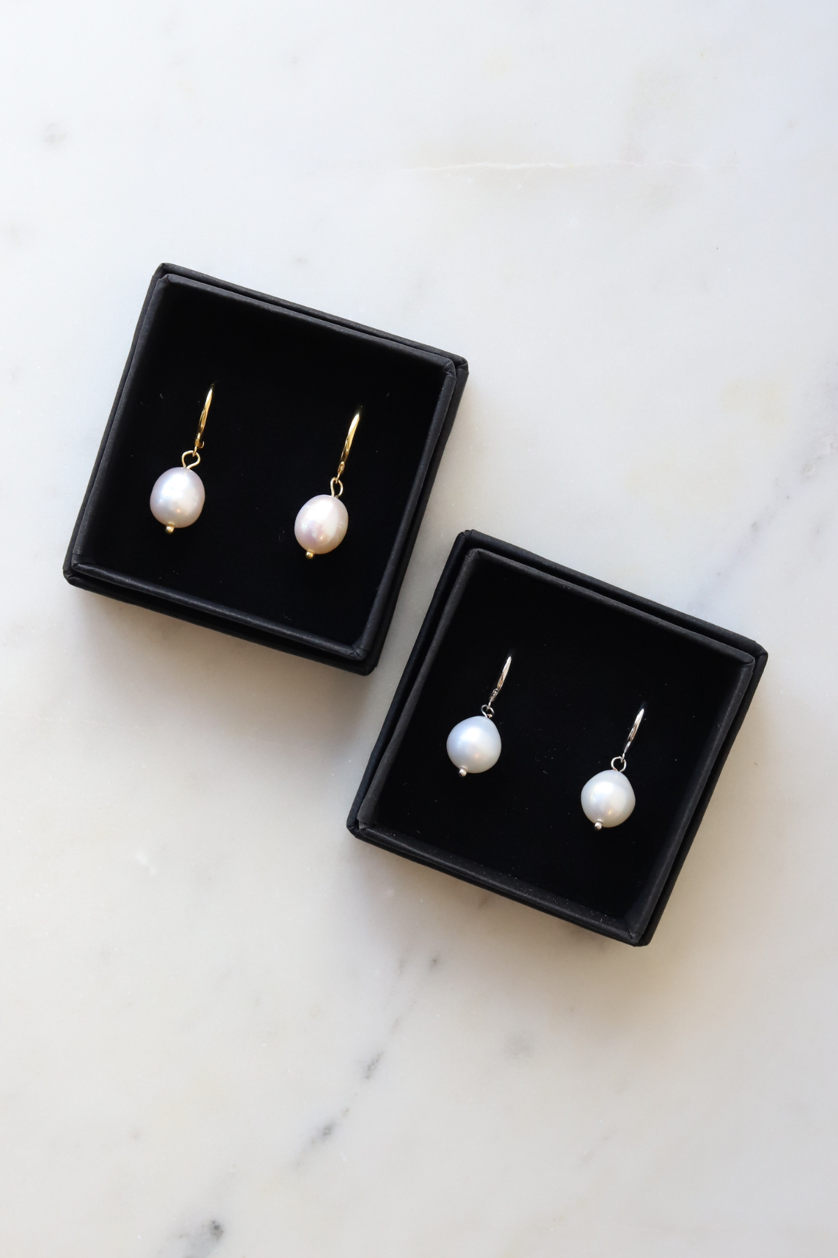 These Single Pearl Huggies combine classic sterling silver with a touch of elegance. The solid sterling silver hoops hug your earlobe comfortably, while the option to add an 18k gold dangle brings a subtle shine and movement. Perfect for everyday wear with a hint of sophistication.